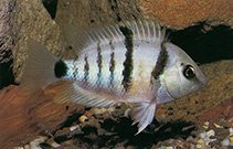 Krásný kančík, vhodný mezi další cichlidy nebo větší ryby. Dorůstá 8 - 10 cm.