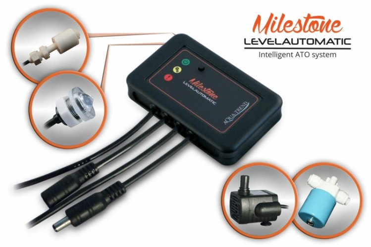 Levelautomatic Milestone je velmi moderní mikroprocesorové zařízení určené k doplnění odpařené vody v akváriu vybavené filtračním systémem založeným na spodní nádrži. Přístroj je vybaven dvěma snímači hladiny kapaliny, optickým, který slouží k zahájení procesu doplňování, a jazýčkovým přepínačem, který hraje dozorovou roli. Automatická náplň Levelautomatic Milestone může pracovat s DC čerpadlem nebo solenoidovým ventilem DC (zařízení je dodáváno s jednou z těchto součástí).