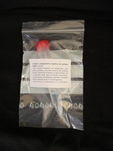 Tato viskózní kapalina se neodpařuje, není proto potřeba ji neustále dolévat do počítače bublin. Jednotlivé bublinky se lépe počítají než v obyčejné vodě, jejich průchod je pomalejší. Tato kapalina je biologicky neškodná. Počítadlo bublin naplňte asi do ½ touto kapalinou.