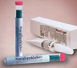 Dvojsložkové lepidlo na korály, po smíchání obou komponent se lepidlo začne vytvrzovat.