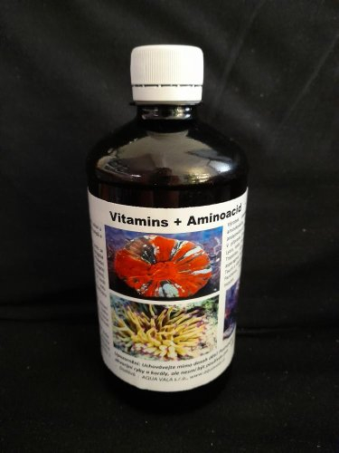 Výrobek Aminoacid a Vitamins - obsahuje všechny potřebné aminokyseliny, které byly v průběhu odborných měření analyzovány v přírodní mořské vodě a jsou prokazatelně důležité pro korály a také vitamíny.