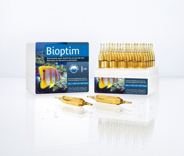 Bioptim je přírodní produkt, který ovlivňuje buněčné bioaktivátory. Podporuje buněčný metabolismus většiny bakterií, žijících v mořském akváriu a zesiluje biologický čistící proces zvýšením počtu bakterií pro zkvalitnění vody v akváriu. Bioptim urychluje zpracování organických látek, snižuje biologickou spotřebu kyslíku a tím přispívá ke zvyšování Redox potenciálu.
