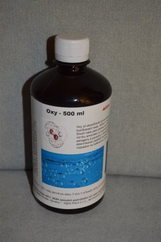Použít lze i na krátkodobou lázeň proti parazitům, kdy ryba se nechá asi 10 - 20 minut v nádobě s roztokem OXY v koncentraci 5 ml / 1 litr vody.