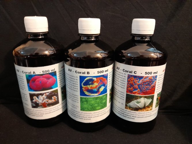 Kompletní set Coral A,B,C obsahuje dohromady všechny nutné prvky pro měkké i tvrdé korály kromě uhličitanů a vápníku, které dávkujeme zvlášť. Celkový souhrn prvků v této sadě je : Sr, Mg, K, Li, Fe, Cr, Mn, Ni, Co, Cu, Zn, F, I, B, Mo, Br, vitamín C a B12. Všechny tyto prvky jsou důležité pro růst a vývoj korálů.