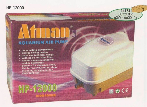 Silný klompresor Atman. 6600 l/h., 60 W, 0,032 MPa