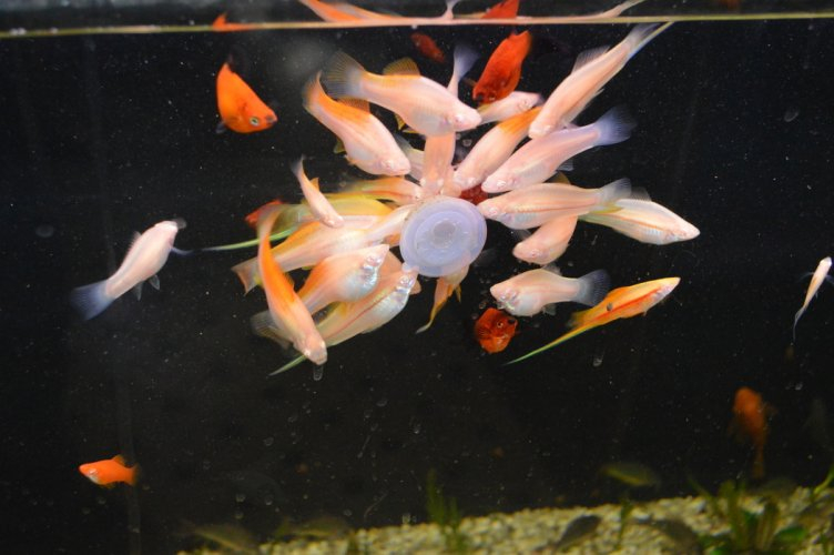 neuvěřitelně voní a láká ryby k čelnímu sklu akvária a nastává boj o sousto.